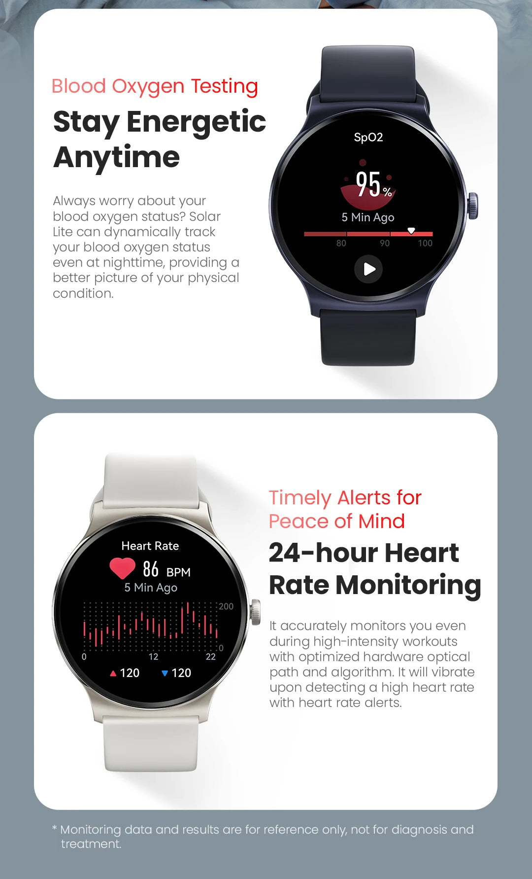 Metriche misurate : cardiofrequenzimetro, monitor dell'ossigeno nel sangue, monitor del sonno, monitor dello stress