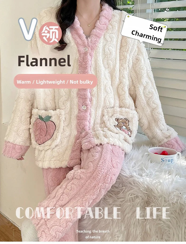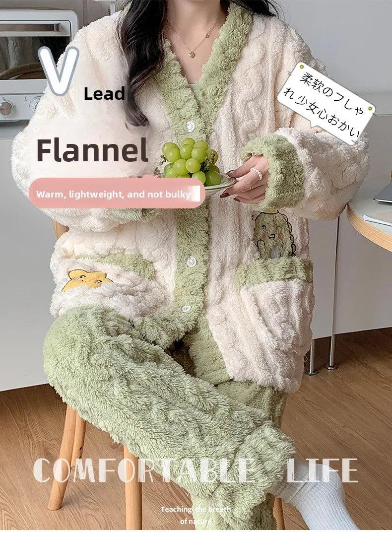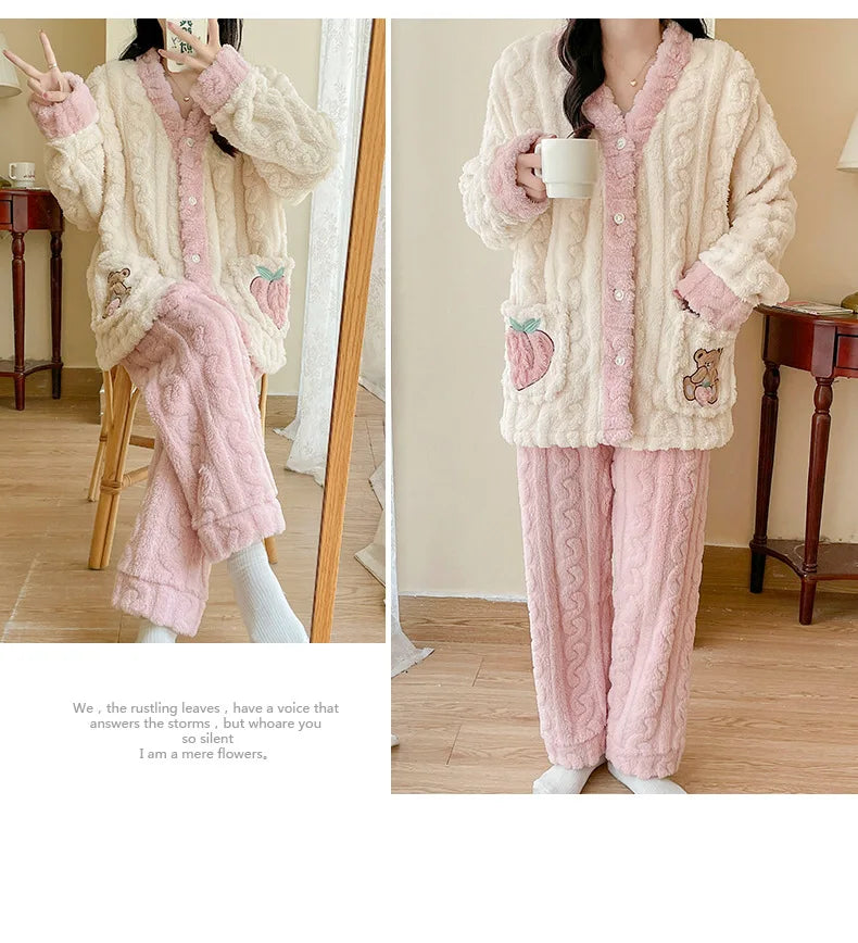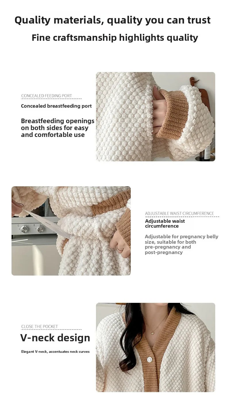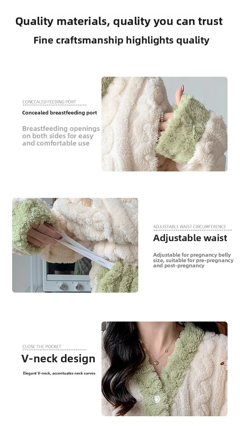 Camicia da notte premaman in flanella spessa, stile autunno inverno, cardigan per l'allattamento, manica lunga, pantaloni lunghi, calda camicia da notte per l'allattamento