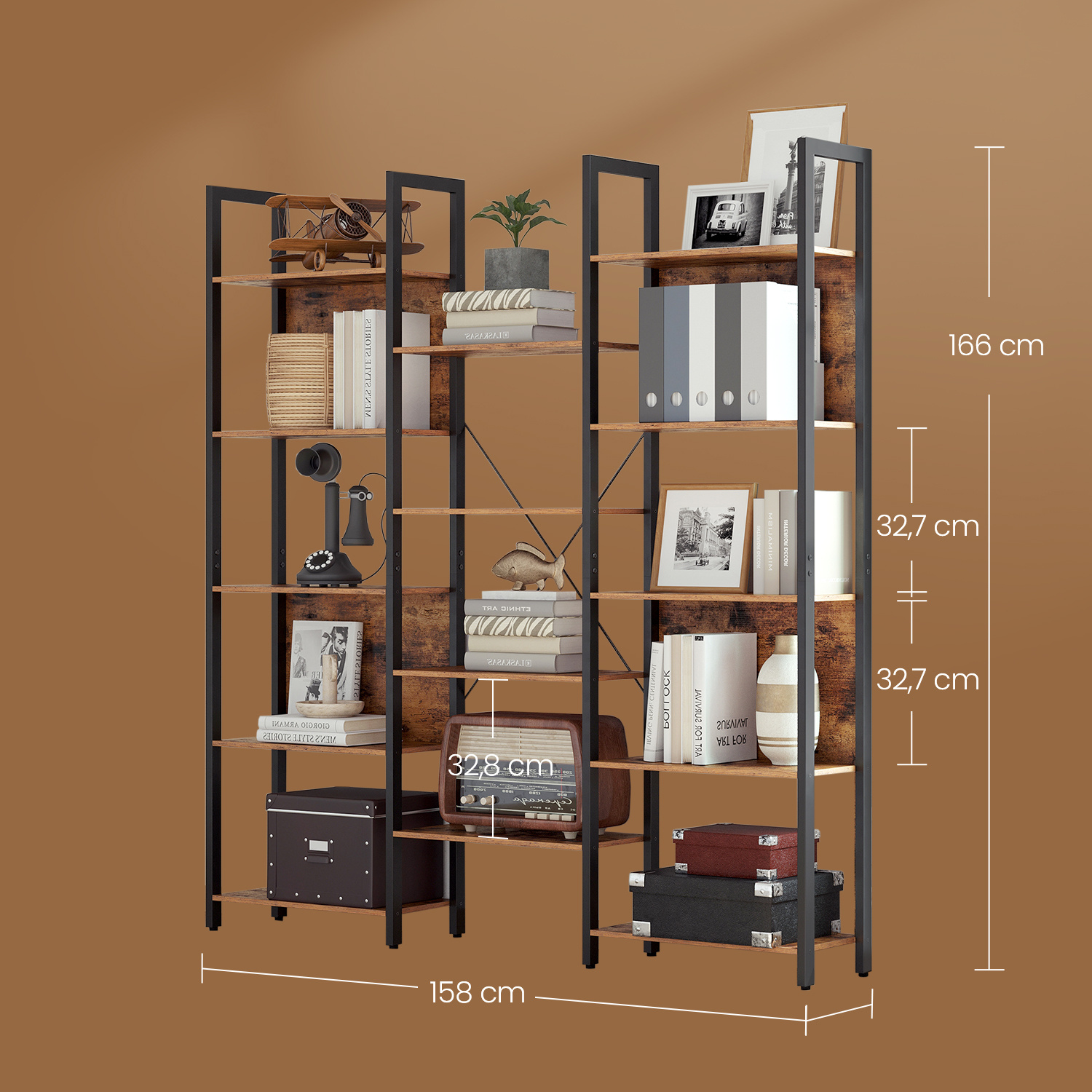 Libreria, scaffale portaoggetti con 14 ripiani, struttura in metallo, soggiorno, ufficio, stile industriale, 24 x 158 x 166 cm