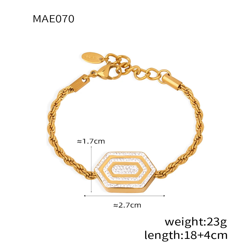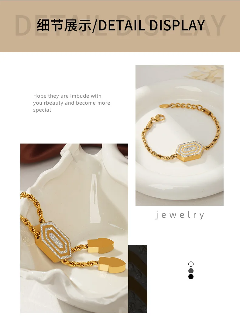 Set di bracciale e collana per donna, catena intrecciata con ciondolo esagonale in zirconia cubica, gioielli in acciaio inossidabile di alta qualità all'ingrosso